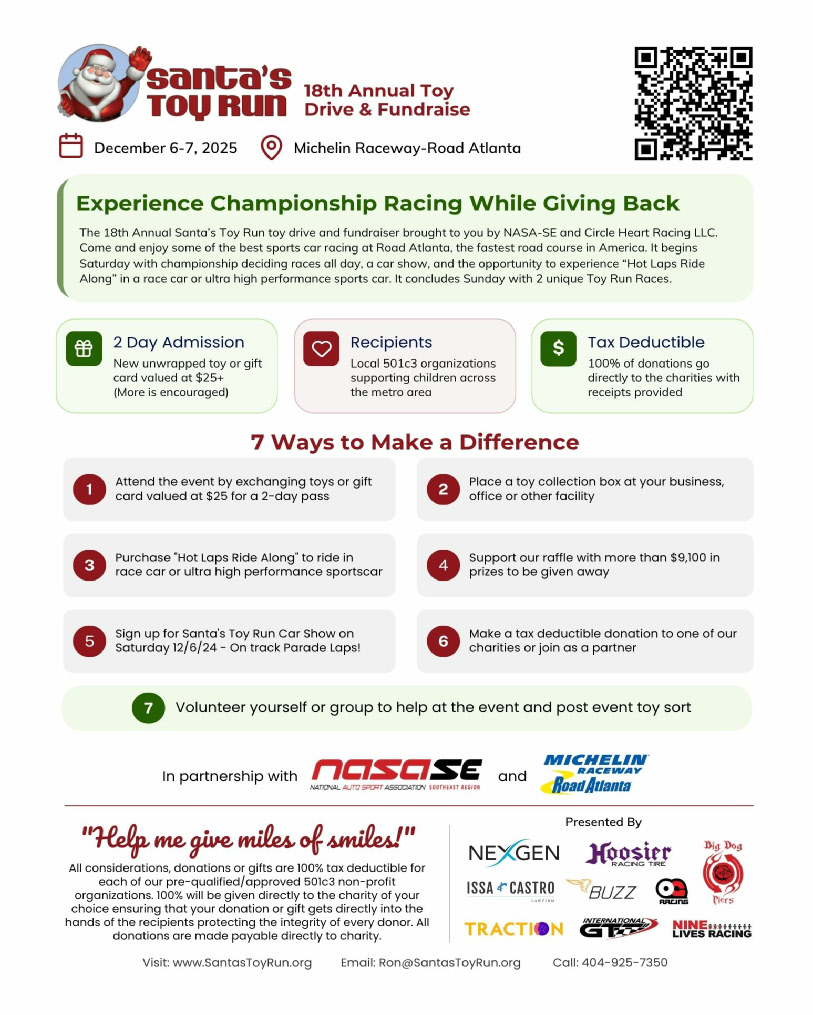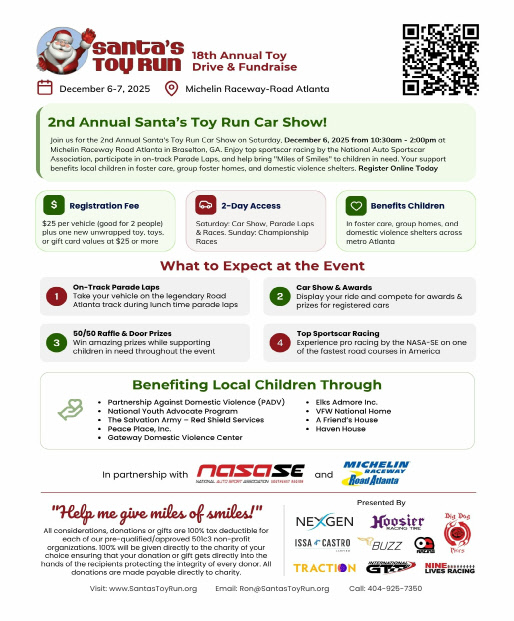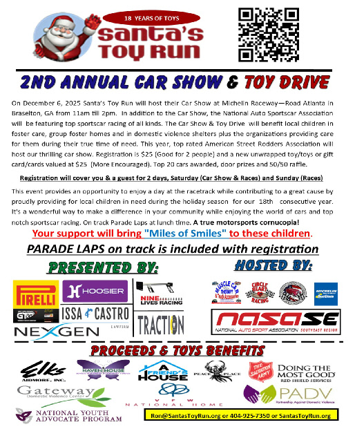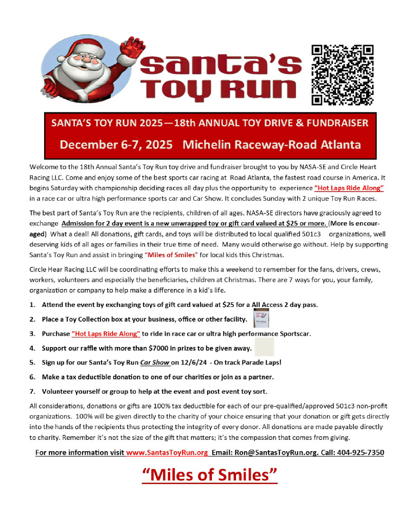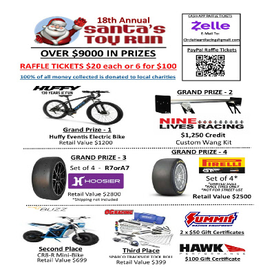 Please help us help these organization in December 2025 with the 18th annual Santa’s Toy Run. Sponsorships and donations needed. These organization counts on our support to help provide toys for kids at Christmas and without our continued support, many children would not have any gifts for Christmas. Help Circle Heart Racing continue to bring, “Miles of Smiles”