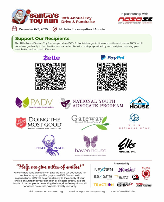 Please help us help these organization in December 2026 with the 19th annual Santa’s Toy Run. Sponsorships and donations needed. These organization counts on our support to help provide toys for kids at Christmas and without our continued support, many children would not have any gifts for Christmas. Help Circle Heart Racing continue to bring, “Miles of Smiles”